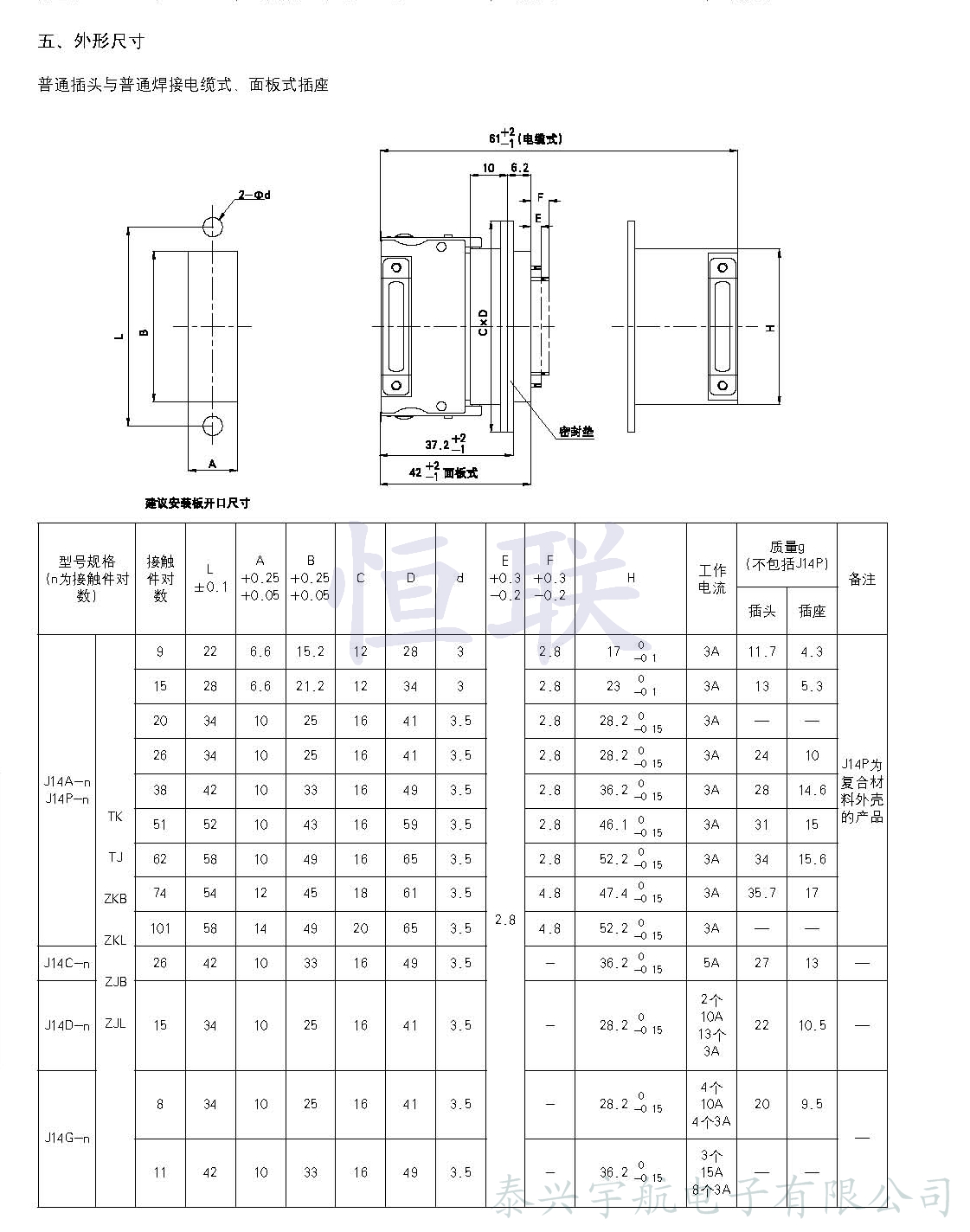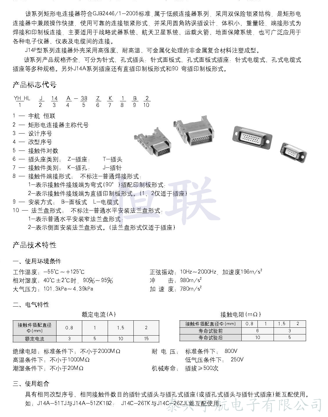 J14A、C、D、G、P系列矩形電連接器