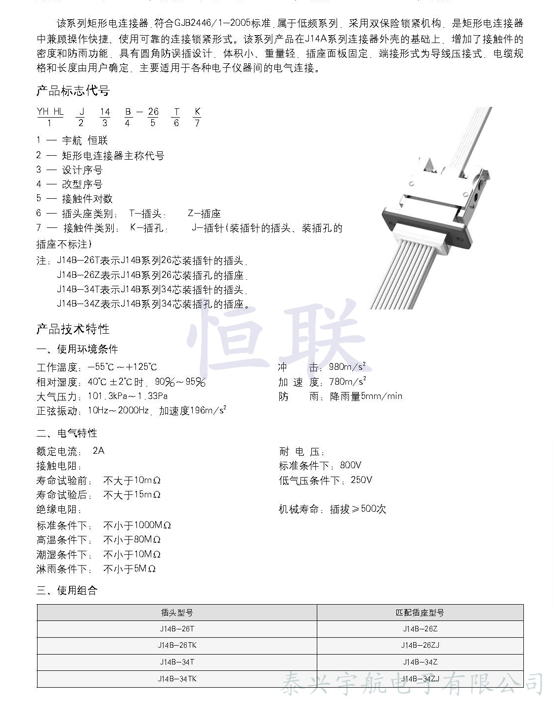 該系列產(chǎn)品為低頻類電連接器,符合GJB142A-92標(biāo)準(zhǔn),采用雙保險鎖緊結(jié)構(gòu),圓角防反插設(shè)計,插座面板式固定,帶電纜,端接形式為壓接式。該系列產(chǎn)品須在J14A系列連接器的基礎(chǔ)上增加了接觸件的密度和防雨性能,廣泛適用于各種電子儀器間的電氣連接。