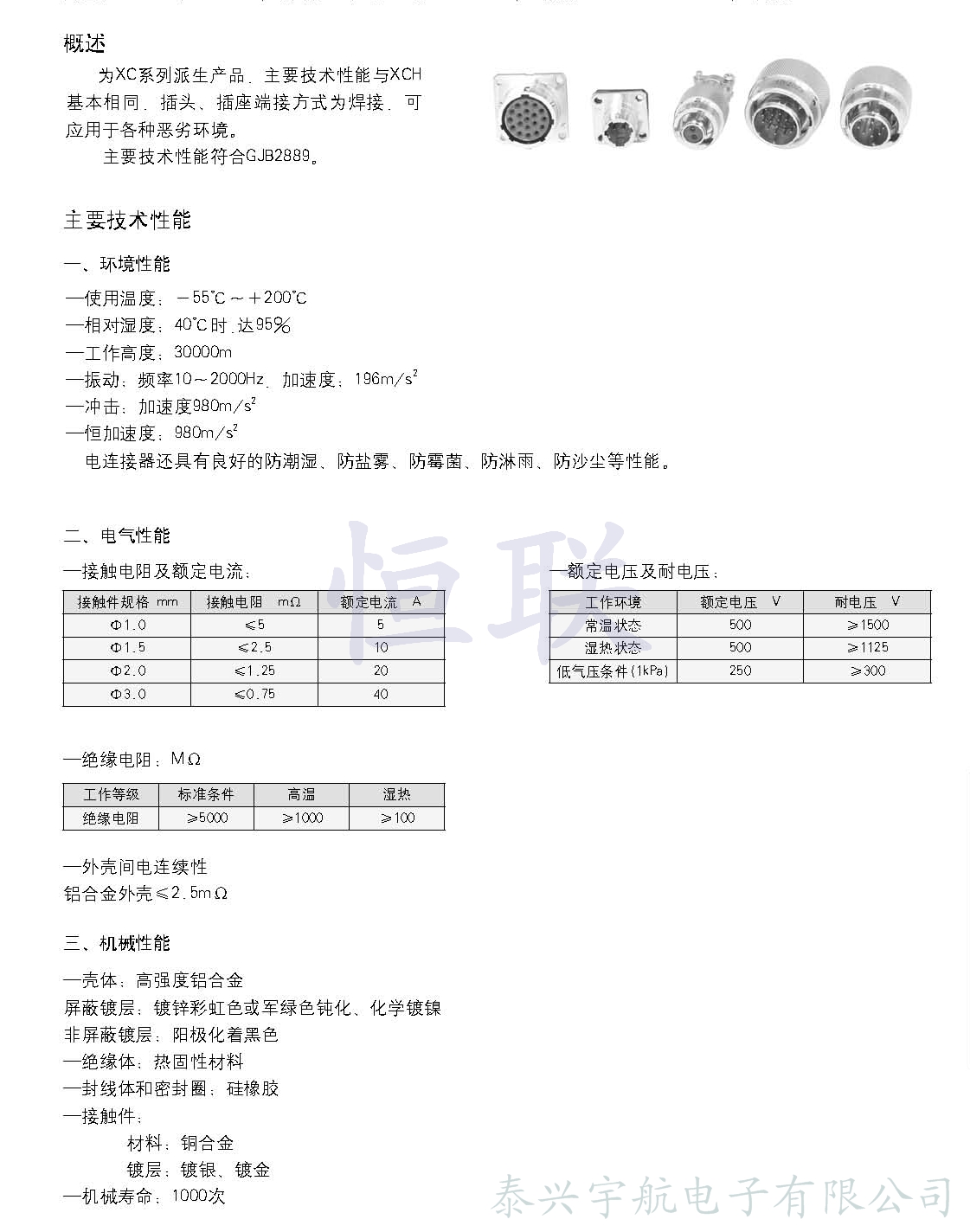 本系列產(chǎn)品為XC系列派生產(chǎn)品,采用卡口式快速連接結(jié)構(gòu),主要技術(shù)性能與XCH系列產(chǎn)品基本相同,符合GJB2889的規(guī)定,接觸件為焊接式,其中插孔線簧孔,插拔柔和,接觸電阻小,主要運用于艦船等惡劣環(huán)境領(lǐng)域,電連接器還具有良好的防潮濕、防鹽霧、防霉菌、防濕熱、防沙塵等性能。