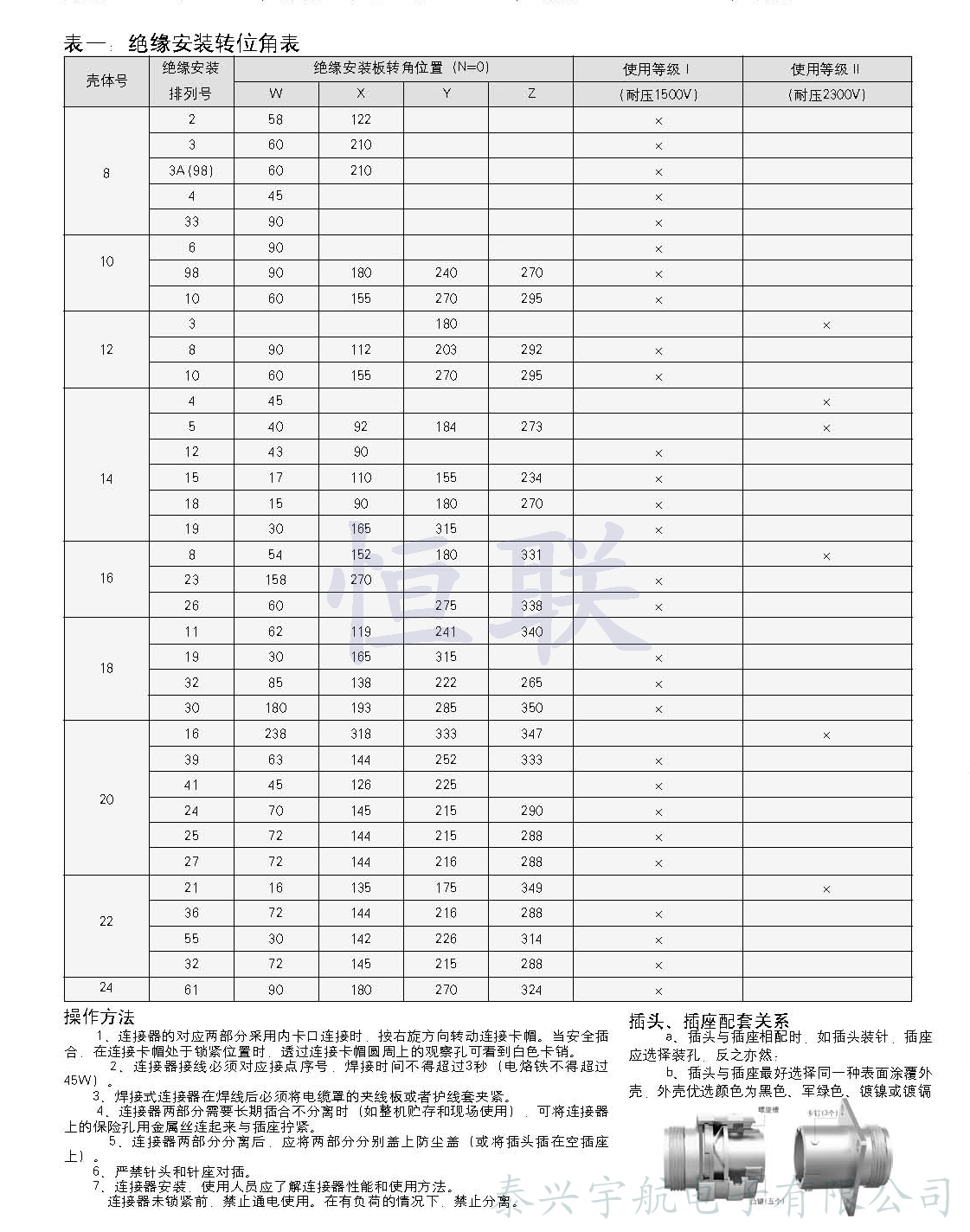 英制電連接器,符合國軍標GJB598A-96 (MIL-C-26482)標準,采用內卡口鎖緊形式, 插座密封,有多種安裝方式,插頭有多種出線 形式。