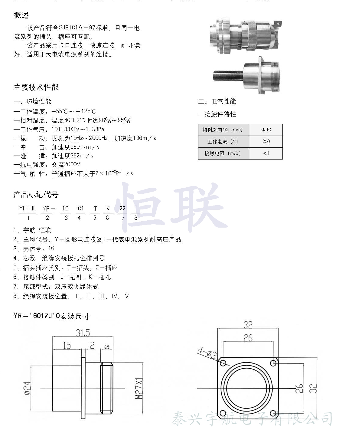 YR系列大電流耐高壓電連接器
